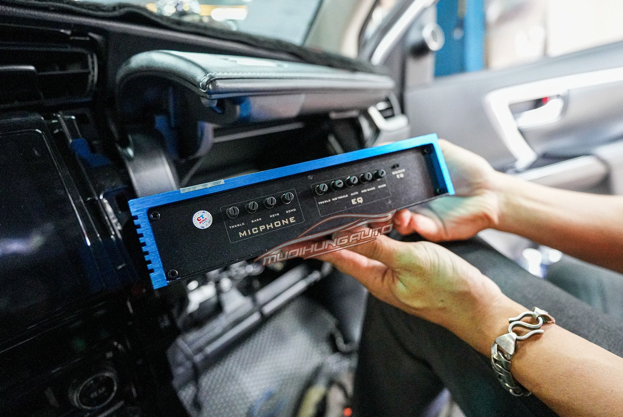 - Bộ Khuếch Đại (Mixer) Mini: Nếu không gian xe rộng (như xe 16 chỗ Limousine), một bộ mixer mini sẽ giúp điều chỉnh chất lượng giọng hát (echo, reverb) chuyên nghiệp hơn.